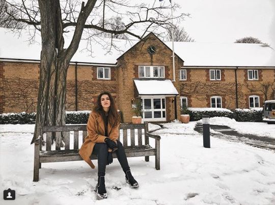Дочь Бута зимой на фоне колледжа, фото: instagram.com