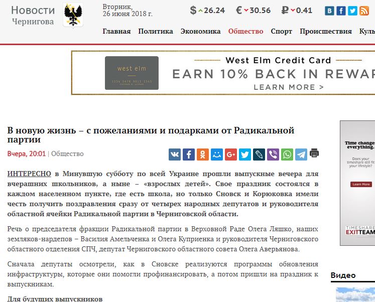 Отметим, что региональные сайты Черниговщины пестрят новостями-благодарностями лично Ляшко и депутатам от его партии, которые поздравили выпускников области.