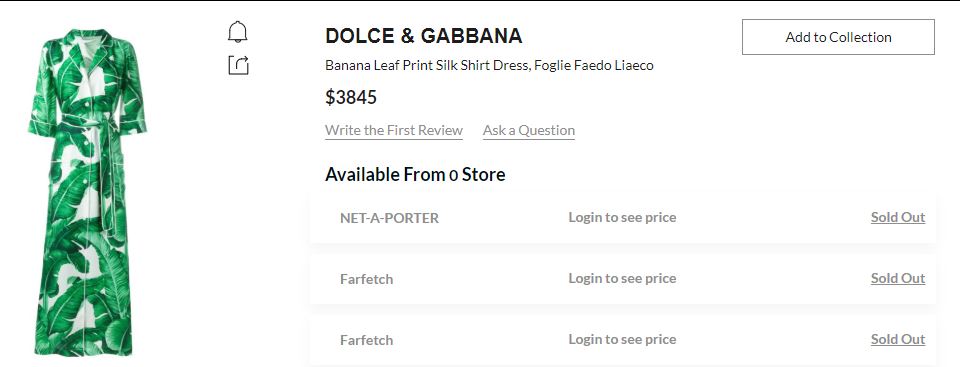 Стоит платье D&G в онлайн-магазине $3845 или 108 429 гривен по курсу НБУ на 11.09.2018 года.
