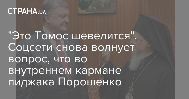 Читатели в комментариях к снимку с Варфоломеем снова высказывают свои версии о том, чтобы могло бы лежать во внутреннем кармане президента.