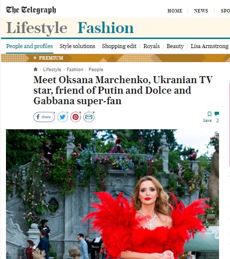 В заголовке The Telegraph телезвезду назвали "подругой Путина" и "суперфанаткой Dolce & Gabbana". Последнее звание Марченко получила за то, что потратила "миллионы на одежду от итальянского бренда".