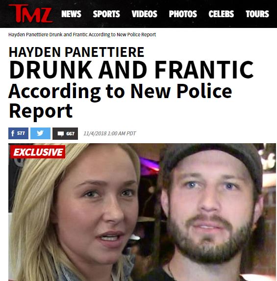 Голливудский таблоид TMZ опубликовал эксклюзивный материал, ссылаясь на свои источники, в котором утверждается, что Хейден вместе со своим новым бойфрендом фигурирует в отчете полиции о драке.
