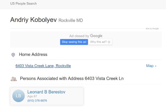Также на на одном из американских поисковиков по адресу дома 6403 VISTA CREEK LN NORTH BETHESDA MD 208524186 мы нашли интересную информацию. За этим адресом был закреплен именно Андрей Коболев — нынешний руководитель "Нафтогаза".