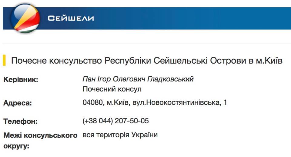 С 2015 года Игорь Гладковский - почетный консул Республики Сейшельские острова и скорее всего имеет ряд привилегий и иммунитетов для дипломатов.