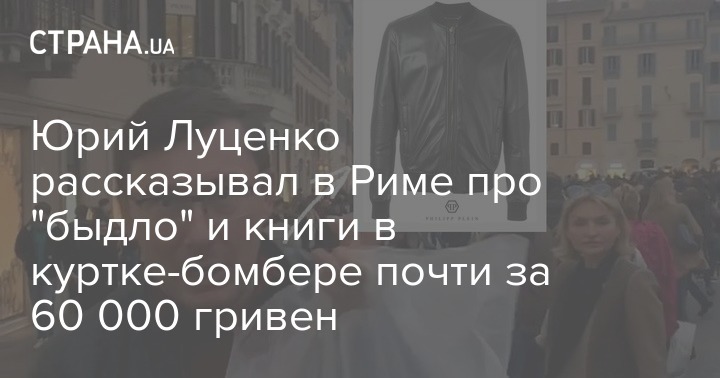 А вот в Риме отличился сам Луценко. На нем была черная куртка-бомбер Grenade из натуральной овечьей кожи от немецкого бренда Philipp Plein (Филипп Пляйн) с логотипом на спине.