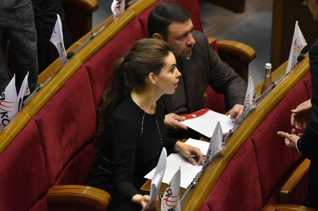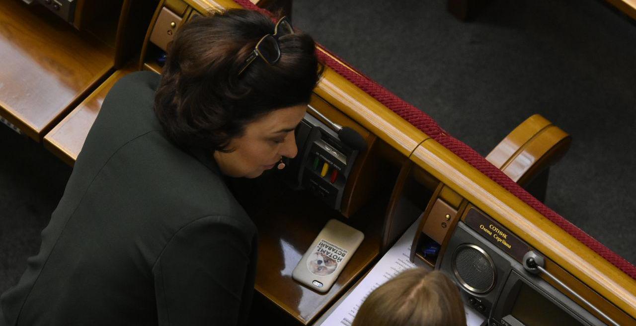 Оксана Сыроед из партии "Самопощь", заместитель председателя Рады, которая очень редко выходит в зал со своего рабочего места позади трибуны на сей раз засветила свой чехол для смартфона.