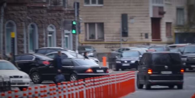 Автомобили Зеленского выезжают со двора на Грушевского, фото: "Новости Украины"