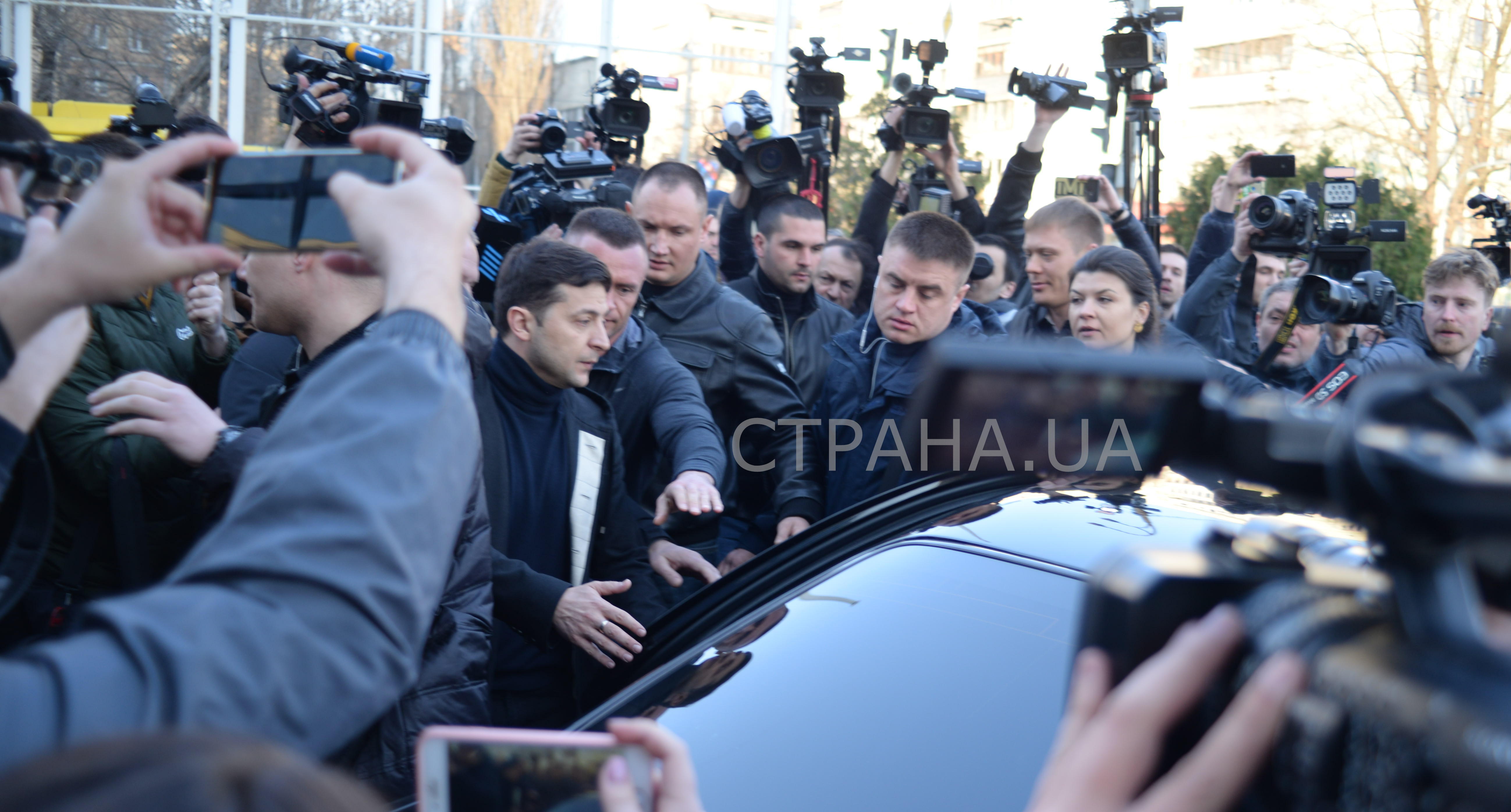 Охранники помогают Владимиру Зеленскому сесть в автомобиль, фото: Изым Каумбаев, "Страна"