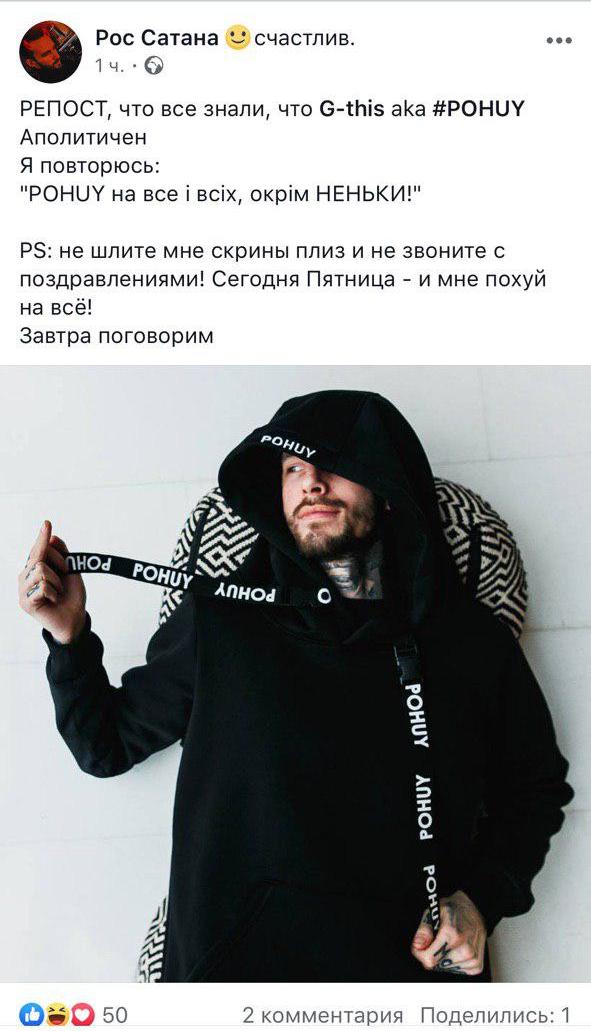 Сами ребята, которые занимаются брендом, пишут, что они "аполитичны" и что им "POHUY на все и всех, кроме неньки" (имеется в виду Украина. – Прим. ред.)