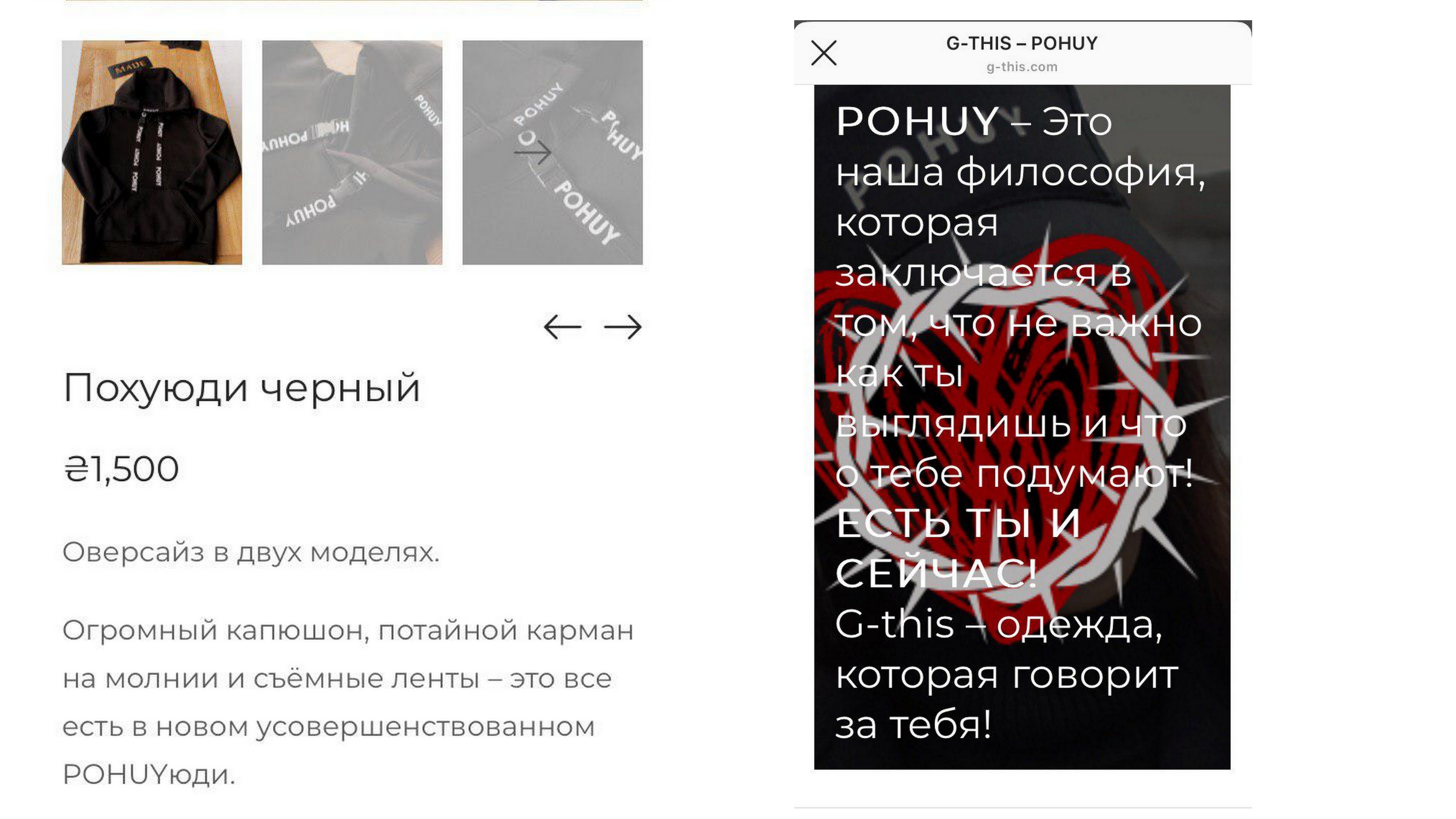 На сайте уточняется, что бренд G-THIS – это не просто шмотки, это состояние души. Не важно, сколько тебе лет, кто ты и где ты, главное – чтобы тебе было комфортно. G-THIS – это плод творения дизайнеров Роса Сатаны и Оли Лунаревой.