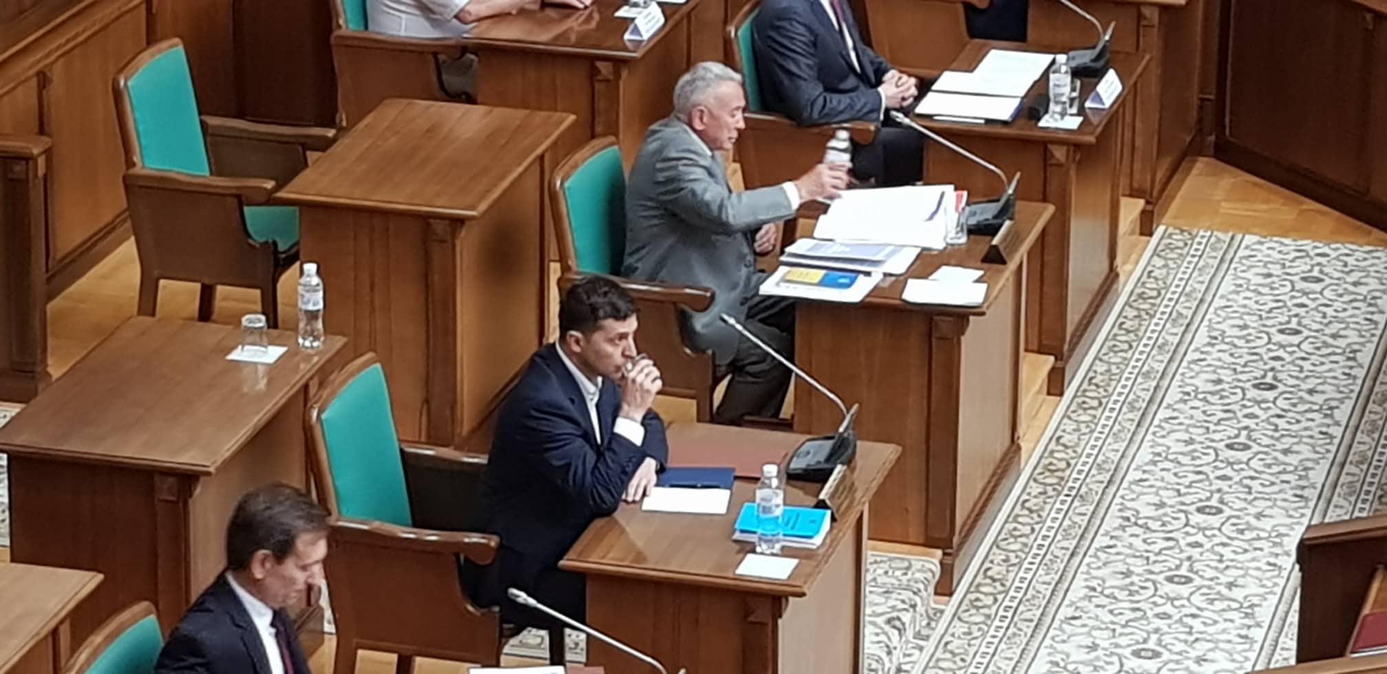 Накануне заседания сам Владимир Зеленский сделал заявление, в котором сказал, что будет присутствовать на сегодняшнем заседании. И он был. Правда не более 10 минут.