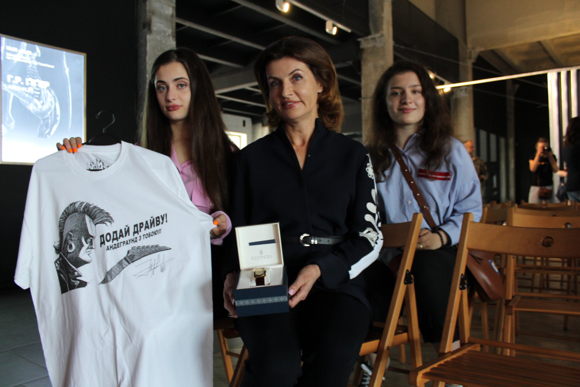 Стать частью благотворительного проекта можно было, приобретя уникальные лоты. Один из которых принесла Марина Порошенко. Это часы ее мужа с гербом Украины и футболка "Додай драйву". Также там выставлялась легендарная красная рубашка Святослава Вакарчука, лидера партии "Голос".
