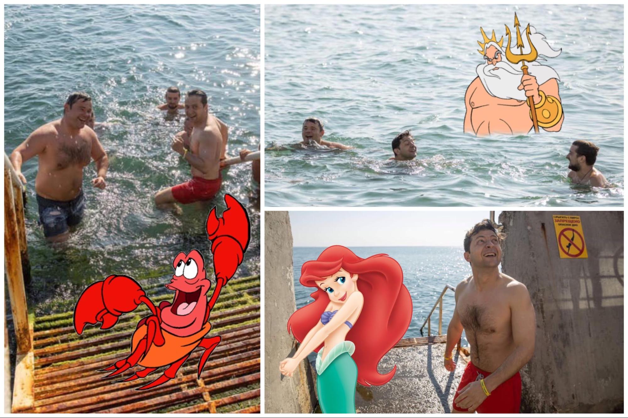 Такую подпись под фото он сделал, видимо, из-за того, что в прессе была информация, что супруга Зе на днях сходила на пляж в Одессе, для чего его перекрыли, а дно проверяли предварительно водолазы.