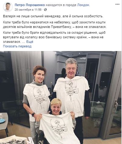 "Когда надо было подвергаться опасности, чтобы защитить средства десятков миллионов вкладчиков "ПриватБанка", - она ​​не сломалась. Когда надо было брать ответственность за сложные решения, чтобы спасти от коллапса всю банковскую систему страны, - она ​​не сломалась", - написал Петр Алексеевич.
