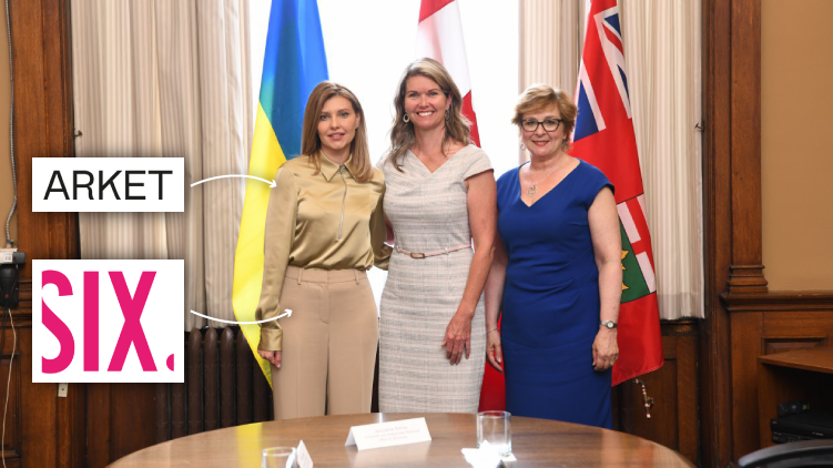 В рамках визита первая леди встретилась с Джил Данлоп, министром по делам детей и женщин правительства провинции Онтарио и Робин Мартин, парламентским секретарем министра здравоохранения провинции Онтарио. Для этого мероприятия Елена выбрала тотально бежевый образ. Надела брюки украинского бренда SIX. и блузу от шведского бренда ARKET.