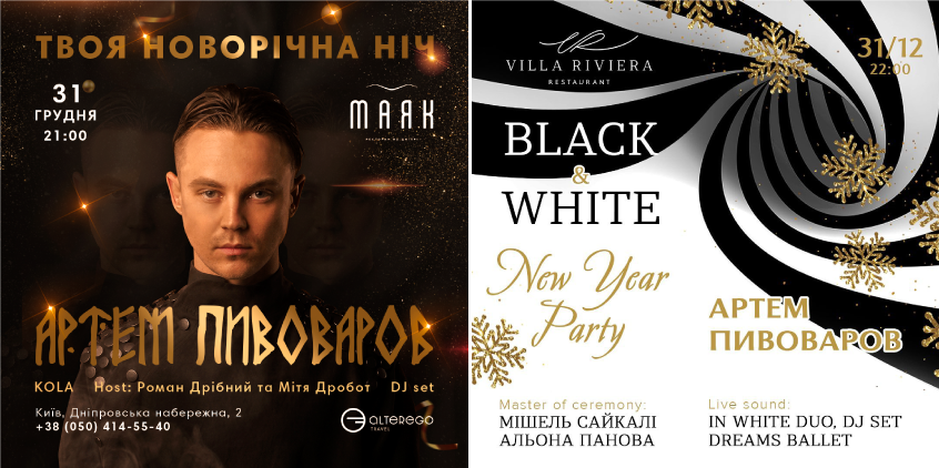 Артисты не первого эшелона тоже будут выступать в новогоднюю ночь, некоторые даже по несколько раз. К примеру певец Артем Пивоваров, гонорар которого $10 000 споет в 4 заведениях Киева: "Маяк", "Villa Riviera", "HAVANA" и "Сейф", тем самым заработает $40 000. Отетим, что новый хит Светланы Лободы "Мира мало" написал Пивоваров, который считается не только популярным исполнителем, но и известным автором песен.