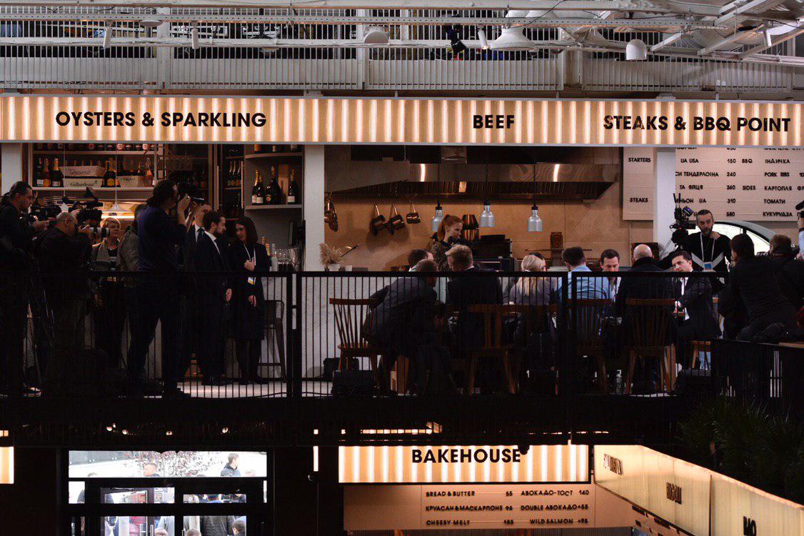 "Киев Фуд Маркет" – это рынок еды, который открылся за несколько недель до проведения пресс-конференции с президентом на территории бывшего завода "Арсенал". Здесь 22 ресторана и пара баров на нескольких уровнях.