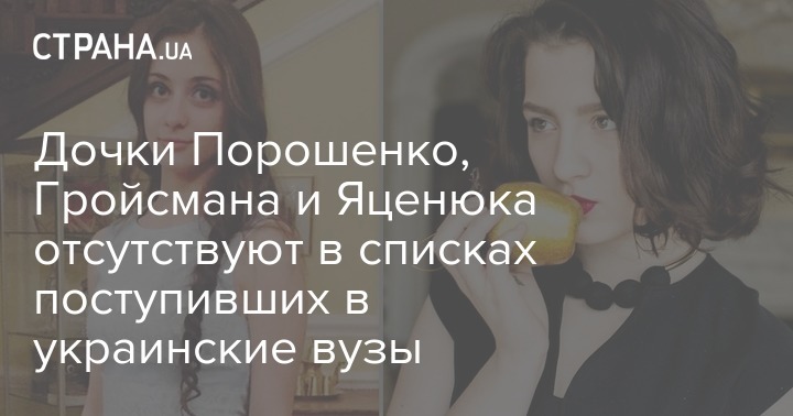 Вчера были обнародованы списки поступивших на бюджет абитуриентов. "Страна" искала в этом перечне детей знаменитостей, но оказалось, что украинское образование выбирают единицы. Напомним, что в этом году должны были закончить школу Евгения и Александра Порошенко, дочки-двойняшки президента Украины, Кристина Фиглус, дочь экс-министра финансов Натальи Энн Яресько, Кристина Гройсман, дочка премьер-министра и Кристина Яценюк, старшая дочь экс-премьера.