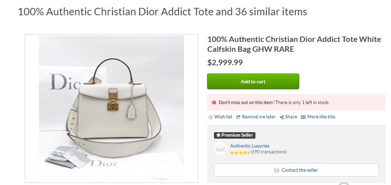 К примеру, вот легендарная белая сумка Dior Addict от французского дома моды Christian Dior.