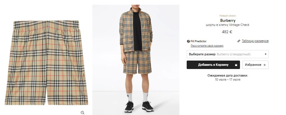 Такие шорты в клетку из новой коллекции стоят €482. К ним предлагается еще ветровка бренда, чтобы получился комплект.