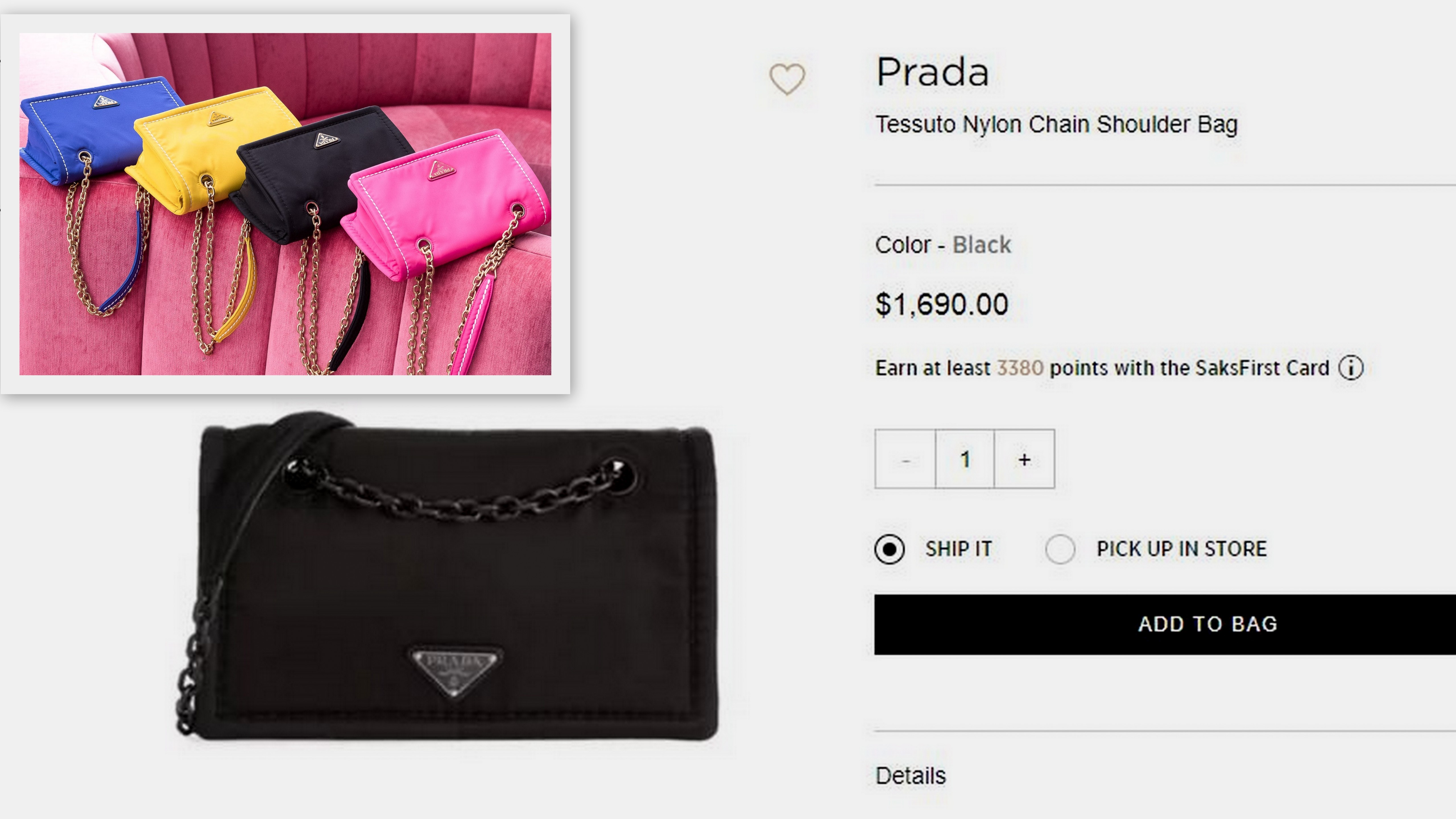 Сумка Prada Tessuto Chain Bag изготовлена ​​из нейлона, что делает ее невероятно прочной. Представлены они в сочной цветовой гамме. Заказать в онлайн-магазине можно такую за $1690.