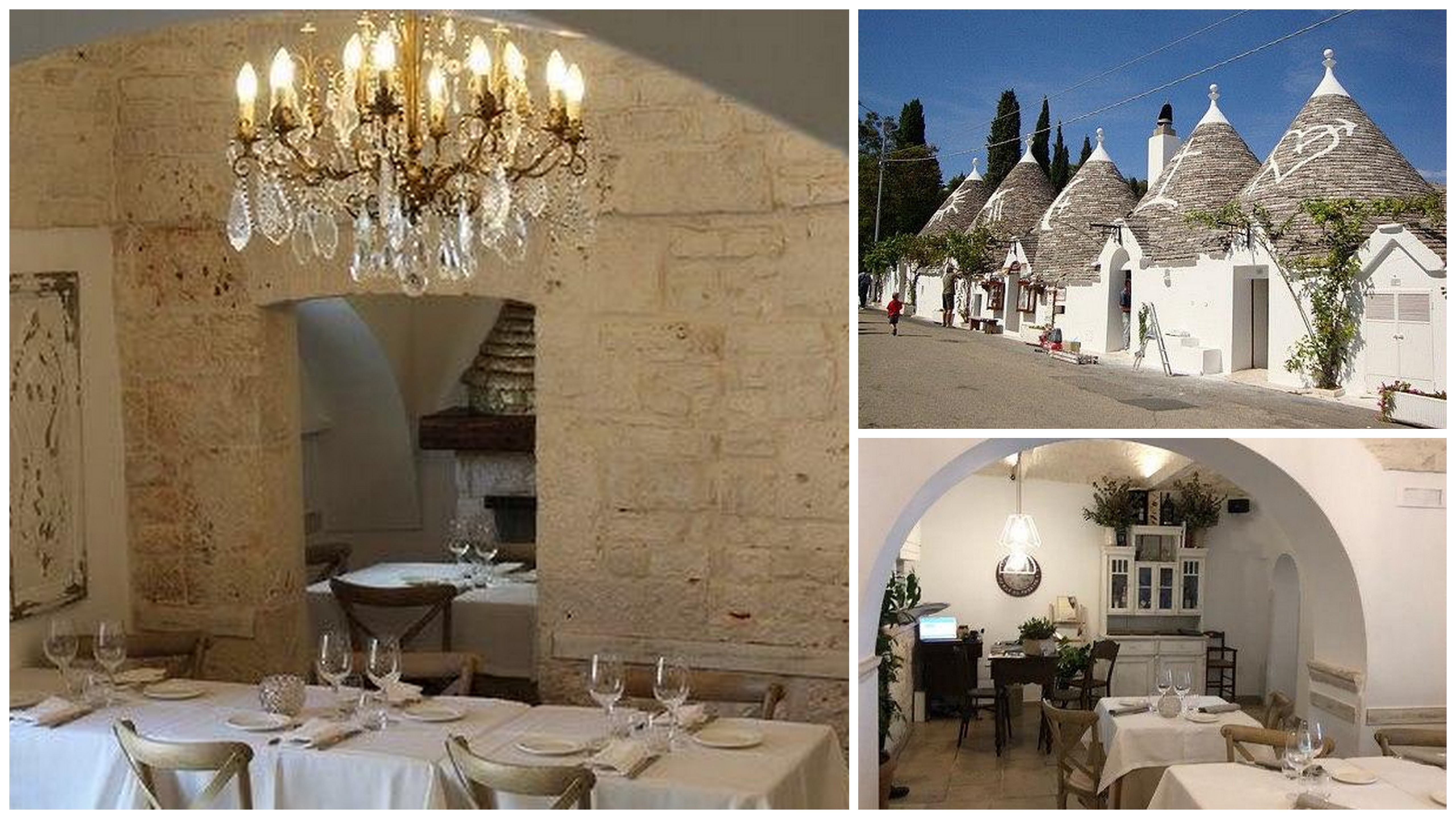 Заведение расположено в трулле – это белоснежные одноэтажные домики с глиняными крышами постройки XVI века. Столик тут нужно бронировать заранее, за пару недель до желаемой даты. Ведь ресторан два года назад получил признание и попал в престижный гастрономический гид Мишлен.