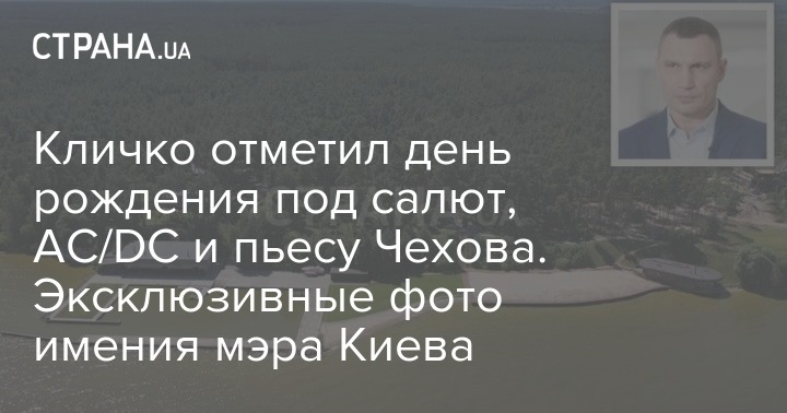 На празднике у Кличко выступал "Украинский современный театр" - Ольга Сумская, Виталий Борисюк и Алексей Вертинский сыграли для именинника и его гостей спектакль "Медведь" по пьесе-комедии Антона Чехова. А ровно в 00:00 начался роскошный салют под хит группы AC/DC - Hells Bells.