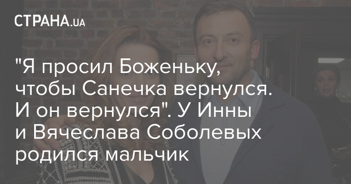 Новоиспеченный отец Вячеслав Соболев также прокомментировал "Стране" рождение сына, которого назвали Сашей. На вопрос, планировали ли они с супругой ребенка или это получилось случайно, Соболев ответил: "Случайно в жизни не получается ничего. 3 декабря я сказал жене, что Санечка к нам вернется в самое ближайшее время. Главное - жить так, чтоб перед Богом не было стыдно, и тогда Боженька сделает все, что вы хотите. Я просил Боженьку, чтобы Санечка вернулся. И он вернулся".