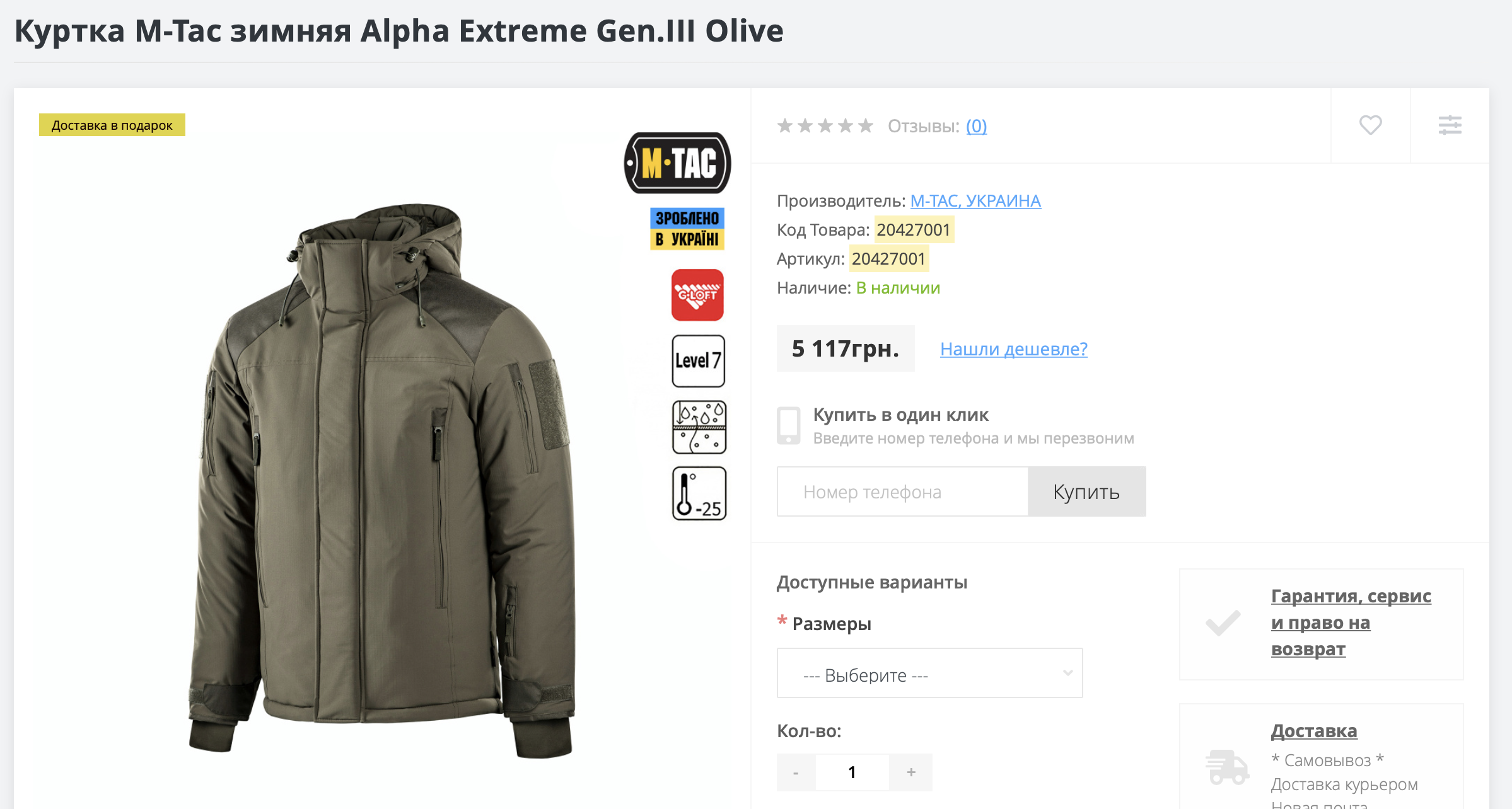 Стоит такая куртка 5117 гривен и обеспечивает комфортную эксплуатацию при температуре до -25°.
