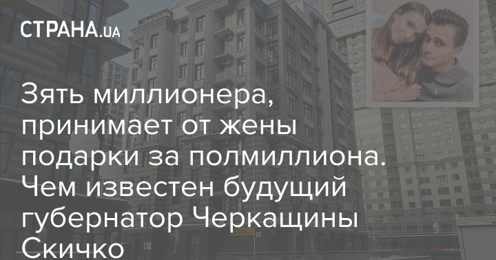 Кстати, состоятельная супруга делает Скичко дорогие презенты. Летом "слуга народа" сообщил о существенных изменениях в его финансовом положении. А именно о подарке от жены почти на полмиллиона гривен (490 272 грн). Но что именно он получил – не уточнил в документе.