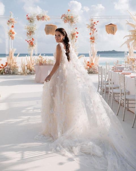 Девушка стала женой казахского бизнесмена по имени Алмаз, который и оплатил все ее прихоти, включая церемонию на Мальдивских островах и дизайнерское свадебное платье. Снимками и видео с долгожданного праздника Онуфрийчук поделилась в своем фотоблоге Instagram.