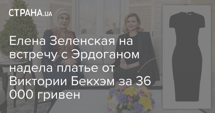 А вот для встречи с супругами Эрдоган наша первая леди появилась в классическом платье длины миди с тонким ремешком от британской певицы и дизайнера Виктории Бекхэм (бренд Victoria Beckham) и удлиненном пиджаке украинской марки A.M.G.