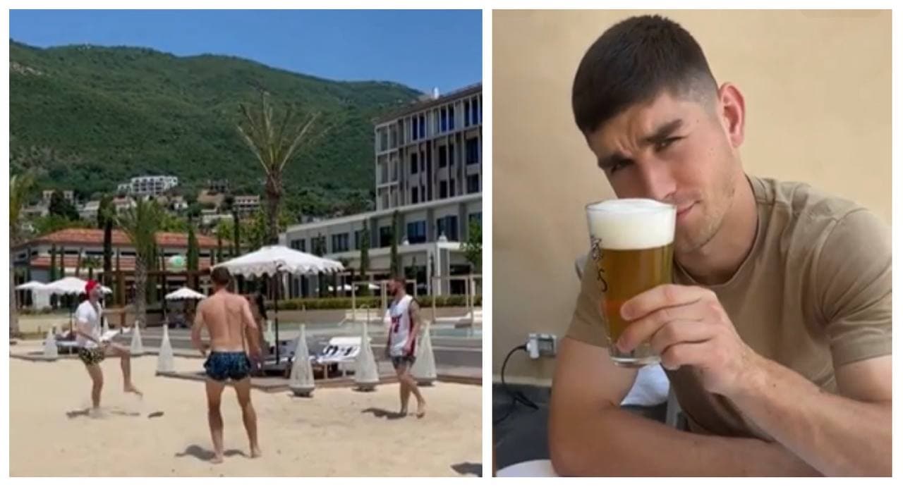 Несколько дней в Черногории провела целая делегация наших футболистов. Андрей Ярмоленко показал, как он, Сергей Сидорчук и Роман Безус с супругами заселяются в живописный отель среди пальм и гор, на первой береговой линии. На завтрак компания звездных игроков пила шампанское на летней террасе ресторана. А на пляже они играли в мяч прямо на песке. Ну как же без этого?!