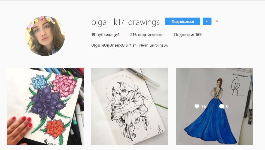 Мы нашли аккаунт Оли Кононенко в Instagram, созданный специально для ее работ и эскизов. Стоит отметить, что девушка действительно неплохо рисует.