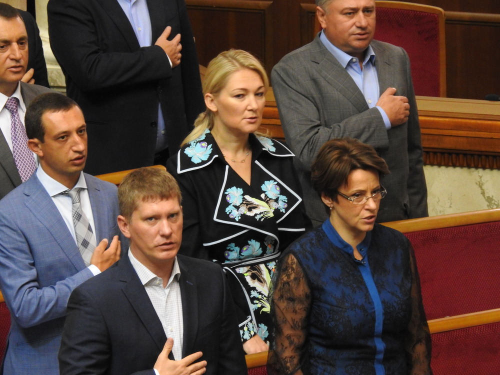 Нардеп Ионова (по середине) поет гимн, фото: Изым Каумбаев, "Страна"