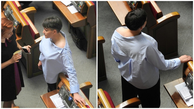Отметим, что в этой рубашке голубого цвета Савченко выглядит очень официально, но в то же время легко и непринужденно. Отметим, что трендом этого сезона являются рубахи свободного кроя, так что Савченко вполне следит за модой, потому что блузки в облипку остались в прошлом.