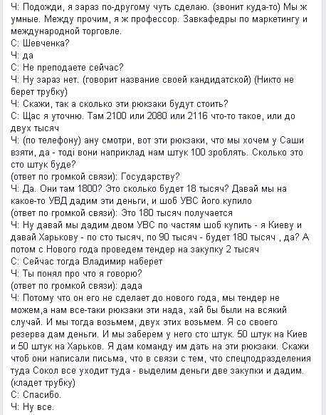 "Владимир", о котором идет речь в расшифровке – скорее всего, харьковчанин Владимир Литвин. Именно с ним связан номер телефона "(067) 340-50-00", указанный в объявлениях о закупке рюкзаков как принадлежащий ООО "Днипровенд".