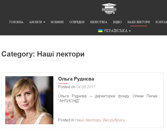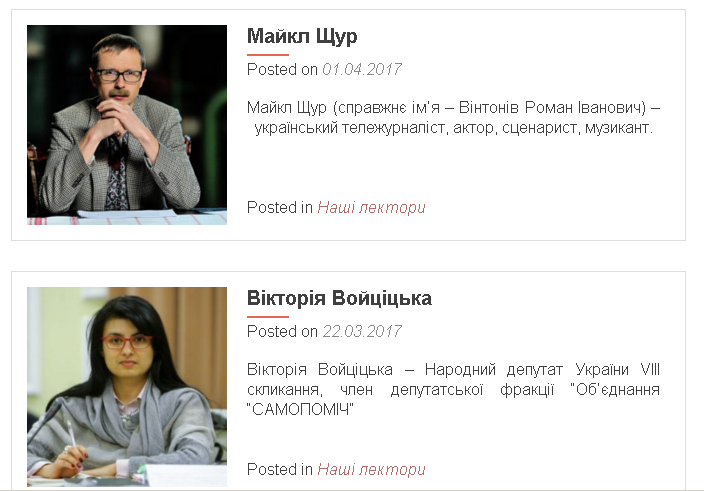 Чтобы добавить своей организации авторитета, ультраправые приглашают для чтения лекций в "ассамблее" известных людей. На сайте организации в числе лекторов указаны, например, директор фонда Елены Пинчук "АНТИСПИД" Ольга Руднева, телеведущий и член правления Национальной общественной телерадиокомпании Майкл Щур (Роман Винтонив) и нардеп от "Самопомощи" Виктория Войцицкая: