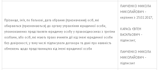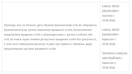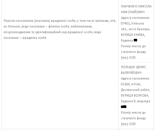 Согласно данным реестра юридических лиц, Полищук в ней числится главой, а Евгений Карась, по чьему адресу зарегистрирована организация, имеет право подписи всех документов: