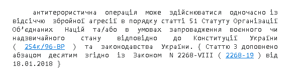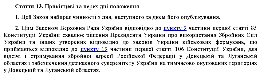 В новом законе одобрено решение президента об использовании Вооруженных Сил Украины для ОВА на оккупированных территориях. Это "добро" прописано в пункте 2 заключительных положений закона: