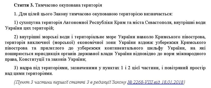 Среди новшеств закона "о реинтеграции Донбасса" - узаконивание оккупационного статуса неконтролируемых территорий. Раньше на законодательном уровне оккупированной была признана только территория Крыма - согласно статье 3 закона "Об обеспечении прав и свобод граждан и правовой режим на временно оккупированной территории Украины":