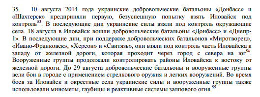 В общем, в докладе ООН так и не дан однозначный ответа о степени российского участия в боях за Иловайск. Приведенные сообщения представителей разных сторон конфликта противоречат друг другу.