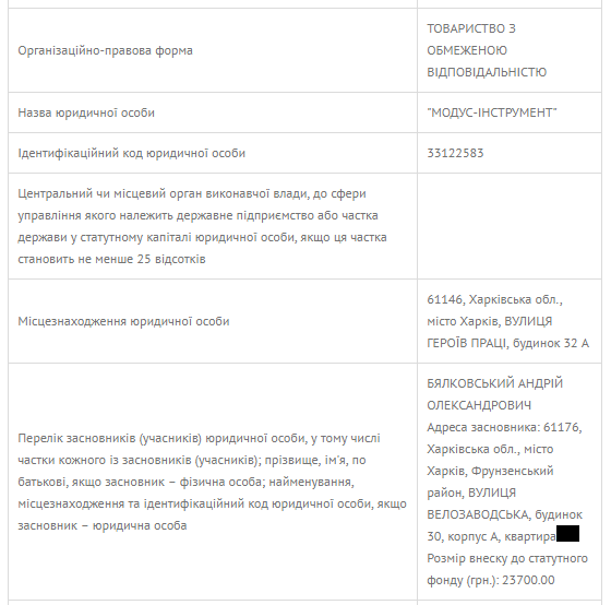 Еще одно предприятие Андрея Бялковского тоже фигурирует в уголовных делах по "Электротяжмашу", и не только по нему. Бялковский является учредителем и директором ООО "Модус-инструмент". Об этом сообщается в реестре юридических лиц: