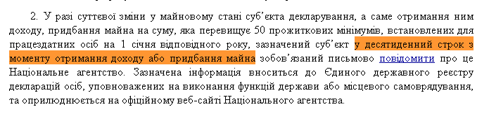 Это приобретение недвижимости новая министр финансов почему-то не сочла нужным задекларировать. Хотя в статье 52 закона "О предотвращении коррупции" прямо указано, что такие дорогостоящие приобретения должны декларироваться в течение 10 дней после их получения: