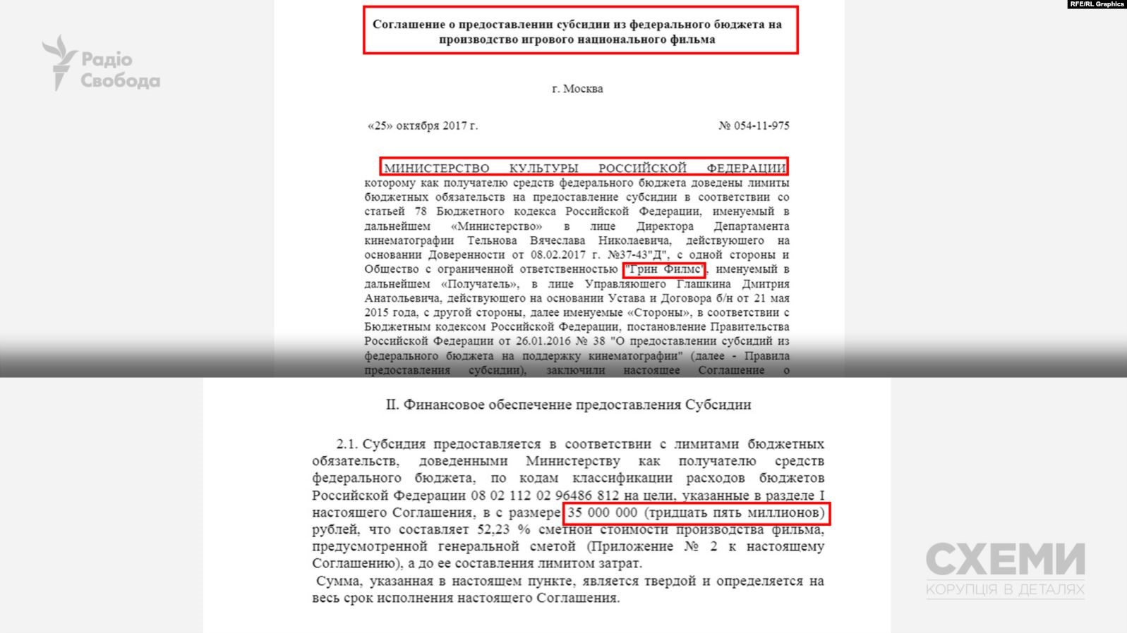 Cоответствующее соглашение между ООО "Грин филмс" и Министерством культуры было опубликовано в реестре субсидий федерального бюджета России.
