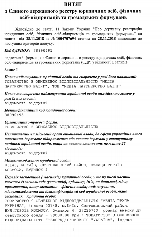 Согласно сведениям реестра юридических лиц, получившее 19,4 млн грн рекламное агентство входит в состав ТРК "Украина", а его бенефициаром (конечным владельцем) указан самый богатый украинский олигарх Ринат Ахметов: