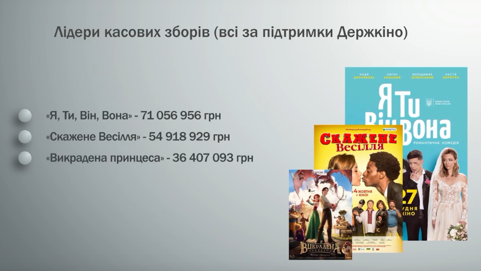 Кинокомпания получила от Госкино под руководством Ильенко 26,6 миллиона на четыре фильма.  Из них 13 миллионов ушло на фильм "Предчувствие", который еще не вышел на экраны. Главную роль в фильме сыграл Станислав Боклан - актер, который играл премьер-министра в телесериале Зеленского "Слуга народа".