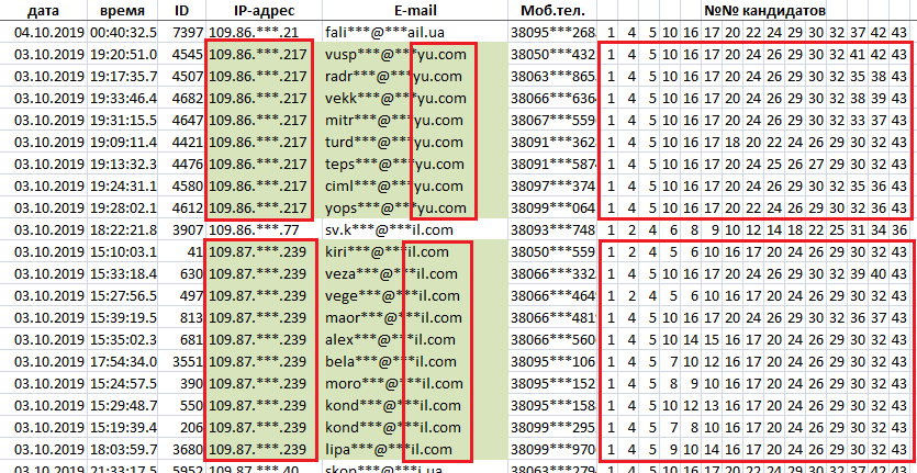 "Страна" решила убедиться в справедливости этих обвинений. Как оказалось, в протоколе интернет-голосования, который опубликован на сайте ГБР,  есть множество примеров голосования с похожих IP-адресов и адресов электронной почты. Причем голоса при этом подавались практически за одних и тех же кандидатов: