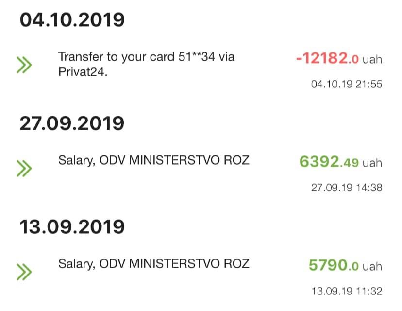 "Все выплаты - зарплаты и премии, которые я получил за 3 месяца работы в Министерстве. На фото. 93122 грн в целом, что составляет 31041 грн в месяц", - написал он, прикрепив соответствующие скриншоты.