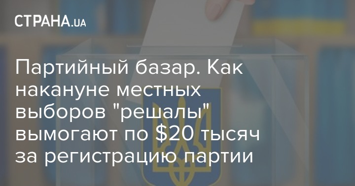 Накануне местных выборов в Украине активизировался нелегальный бизнес - "решалы", козыряя своими связями с чиновниками Минюста, предлагают ускорить процесс регистрации партии за вознаграждение в 20 тысяч долларов.